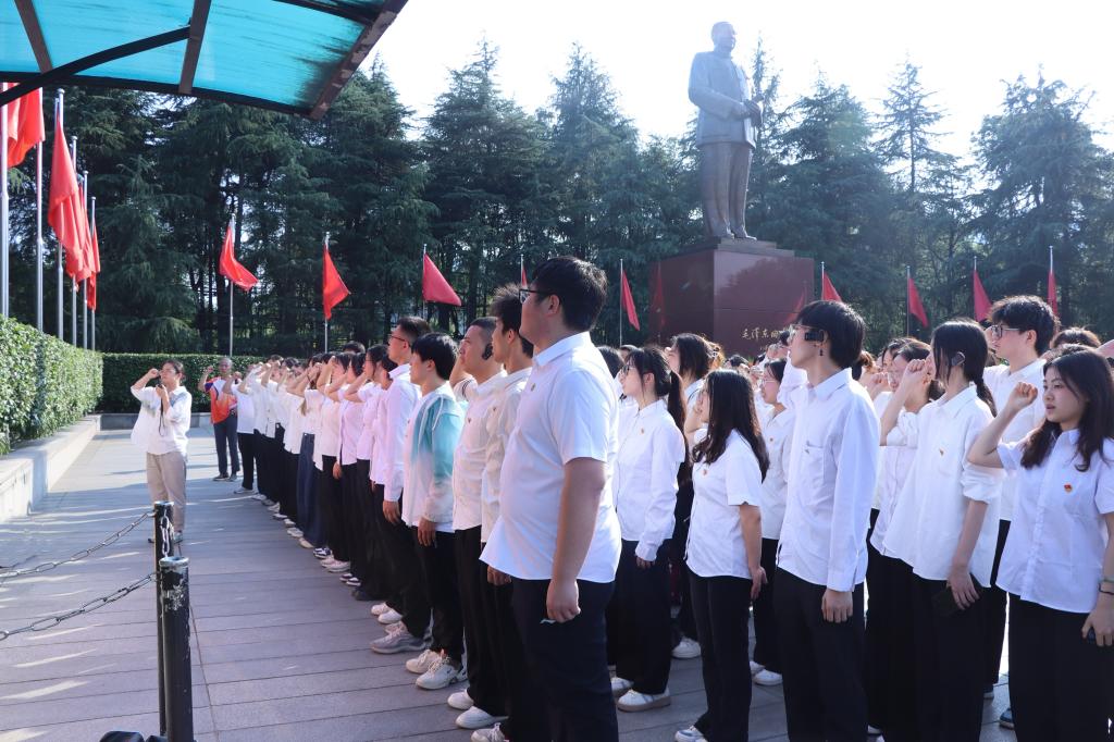 在毛泽东铜像广场,严明领誓,全体党员面朝党旗庄严宣誓。预备党员们纷纷表示,要继承先烈英勇无畏的优良作风,践行爱党爱国的抱负理想。